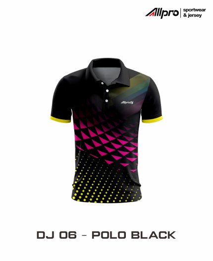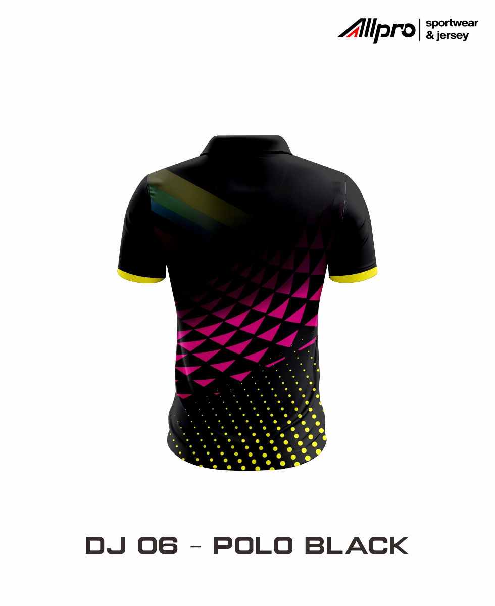 Seri Polo Black dengan detil pink dan yellow