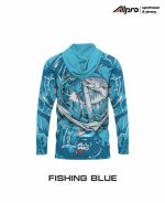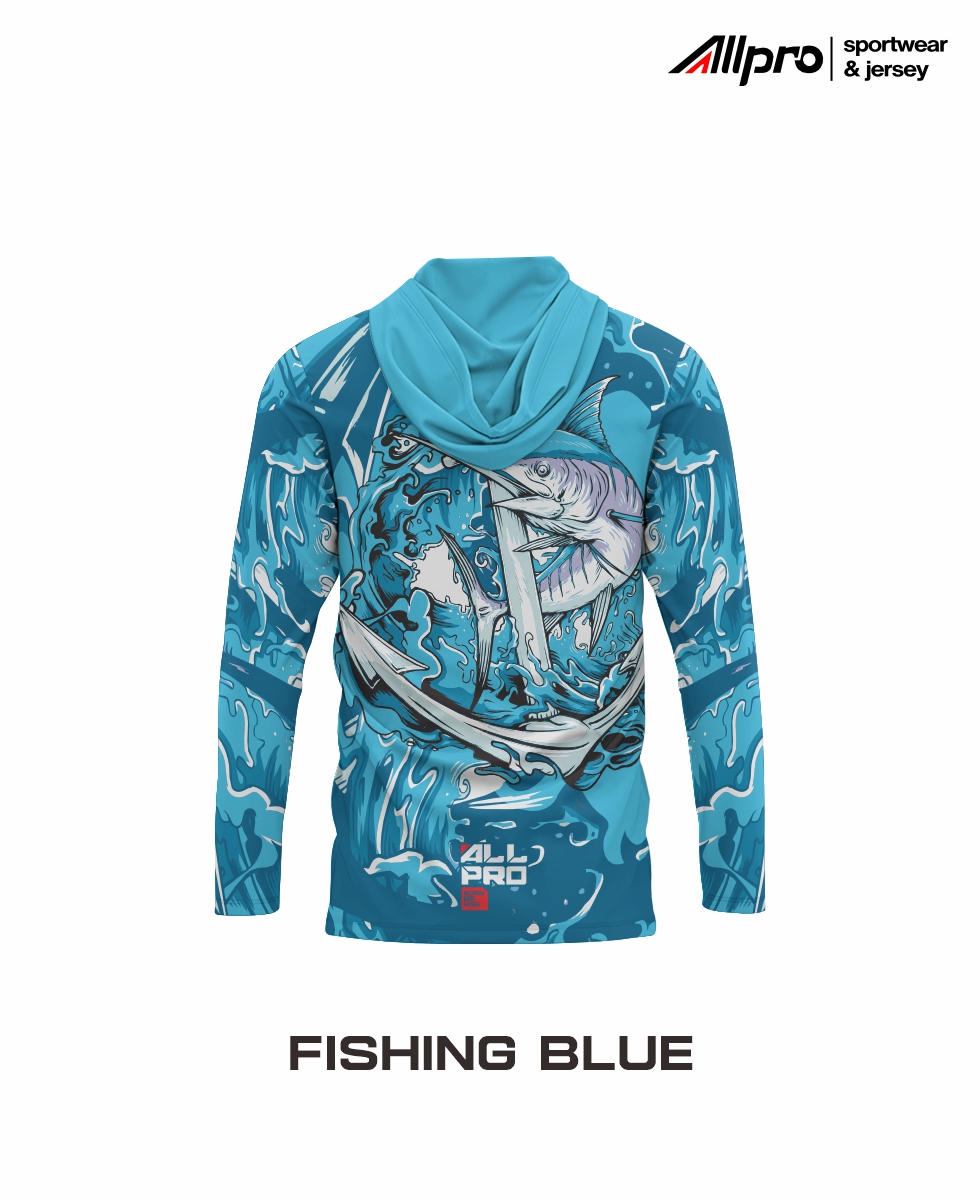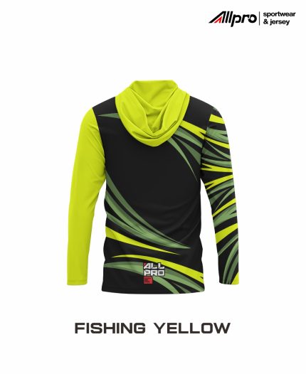 Jersey Fishing berhoodie dan lengan panjang untuk terhindar dari sinar matahari, didesign dengan warna stabilo cerah dengan motif ikan tilapia
