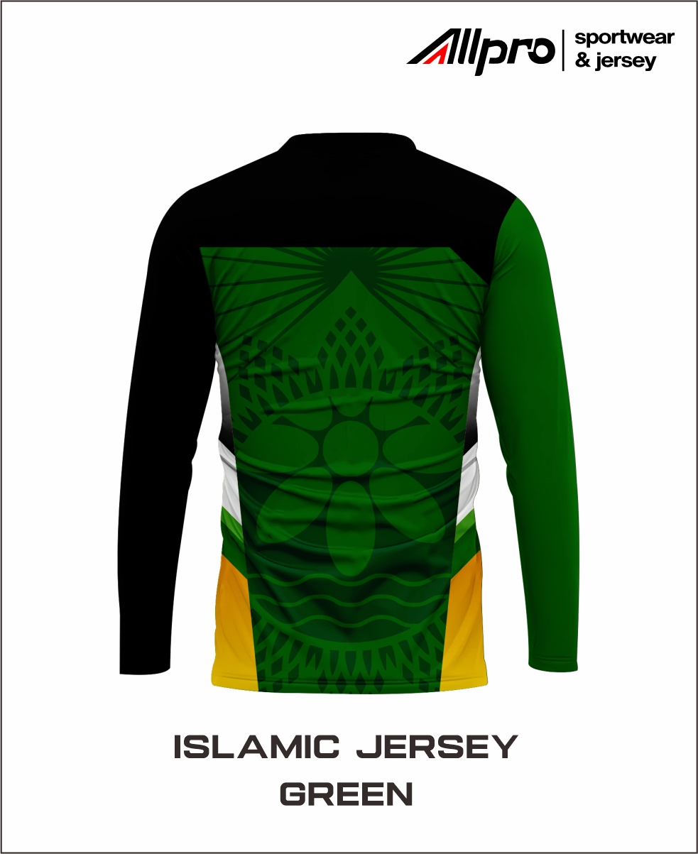 Jersey Muslim berlengan panjang dengan design bernuansa Islami, terdapat 3 warna yaitu putih hijau dan hitam