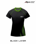 Kaos jersey cewek dengan design sulur hijau berdasar hitam
