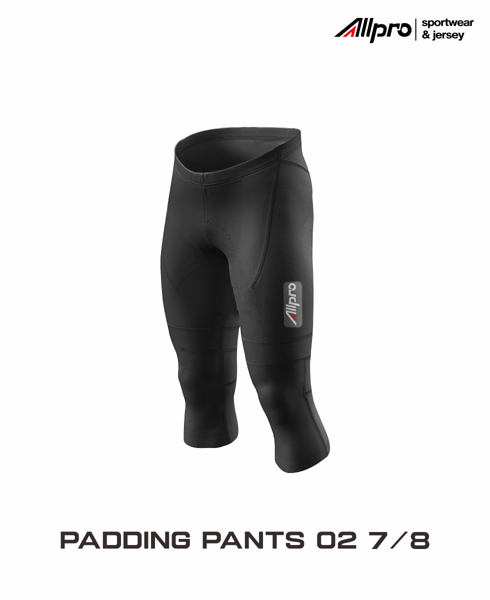 Padding Pants Allpro dirancang untuk memberikan perlindungan dan kenyamanan saat beraktivitas sepeda, dengan bahan yang menempel di kulit. Terdapat padding gel di dalamnya, panjang 7/8